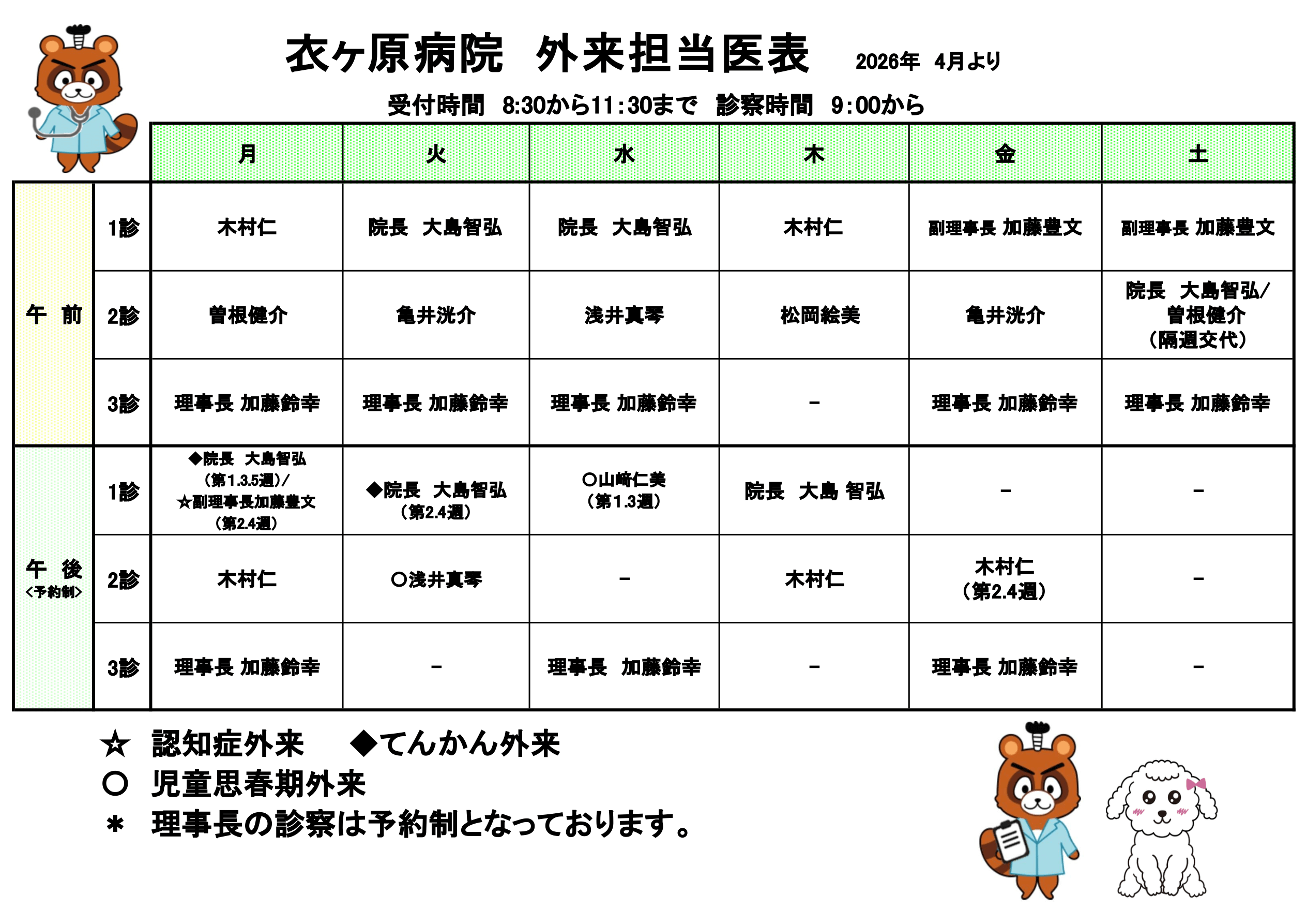 2026年4月からの外来担当医表をお知らせいたします。